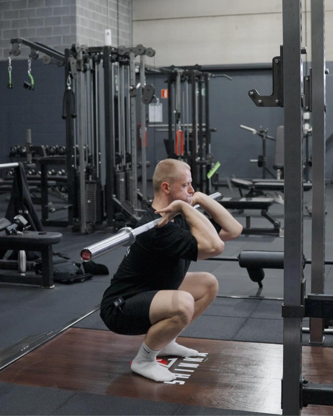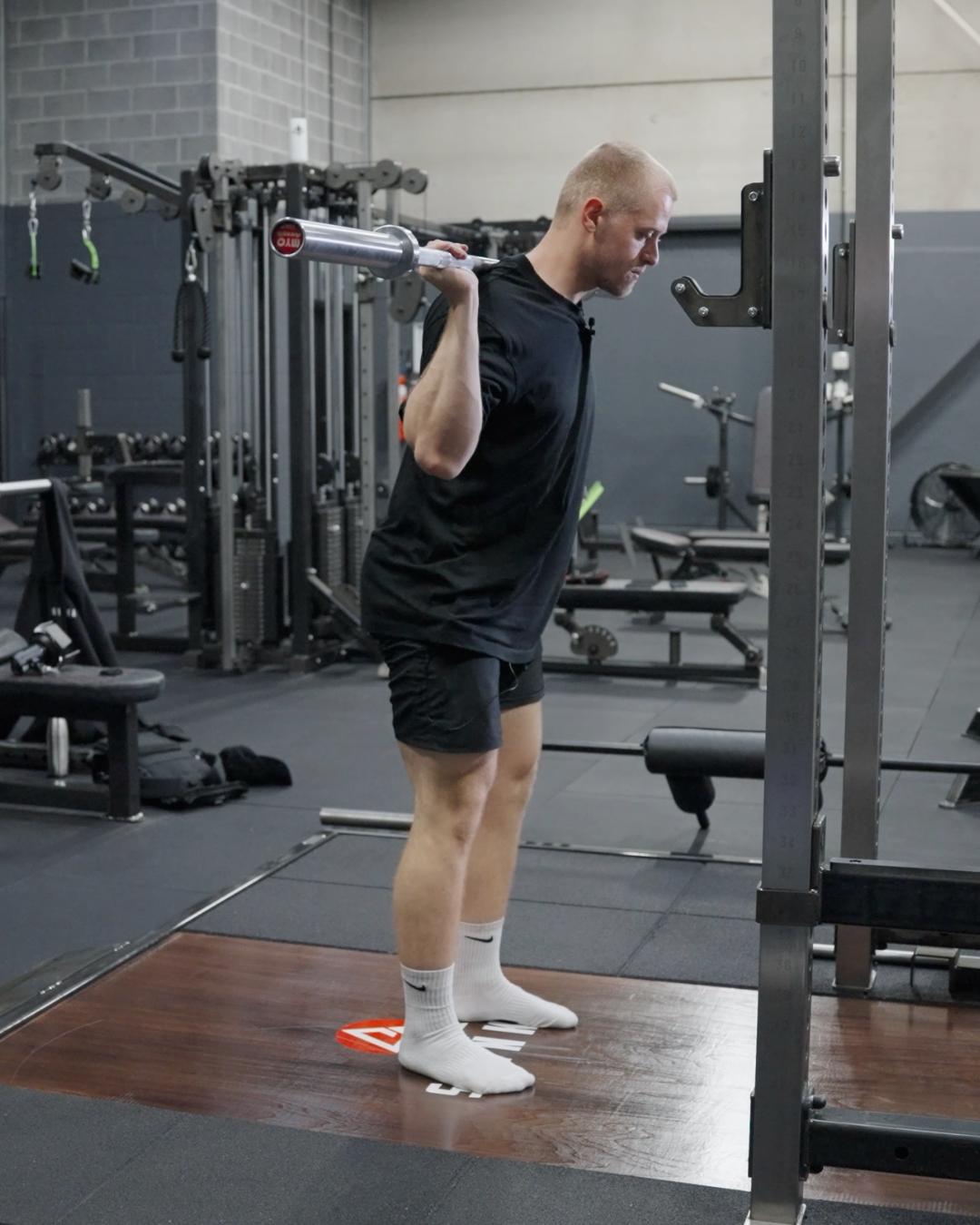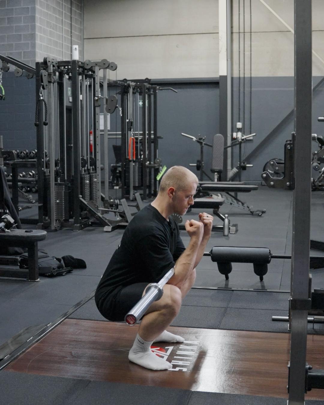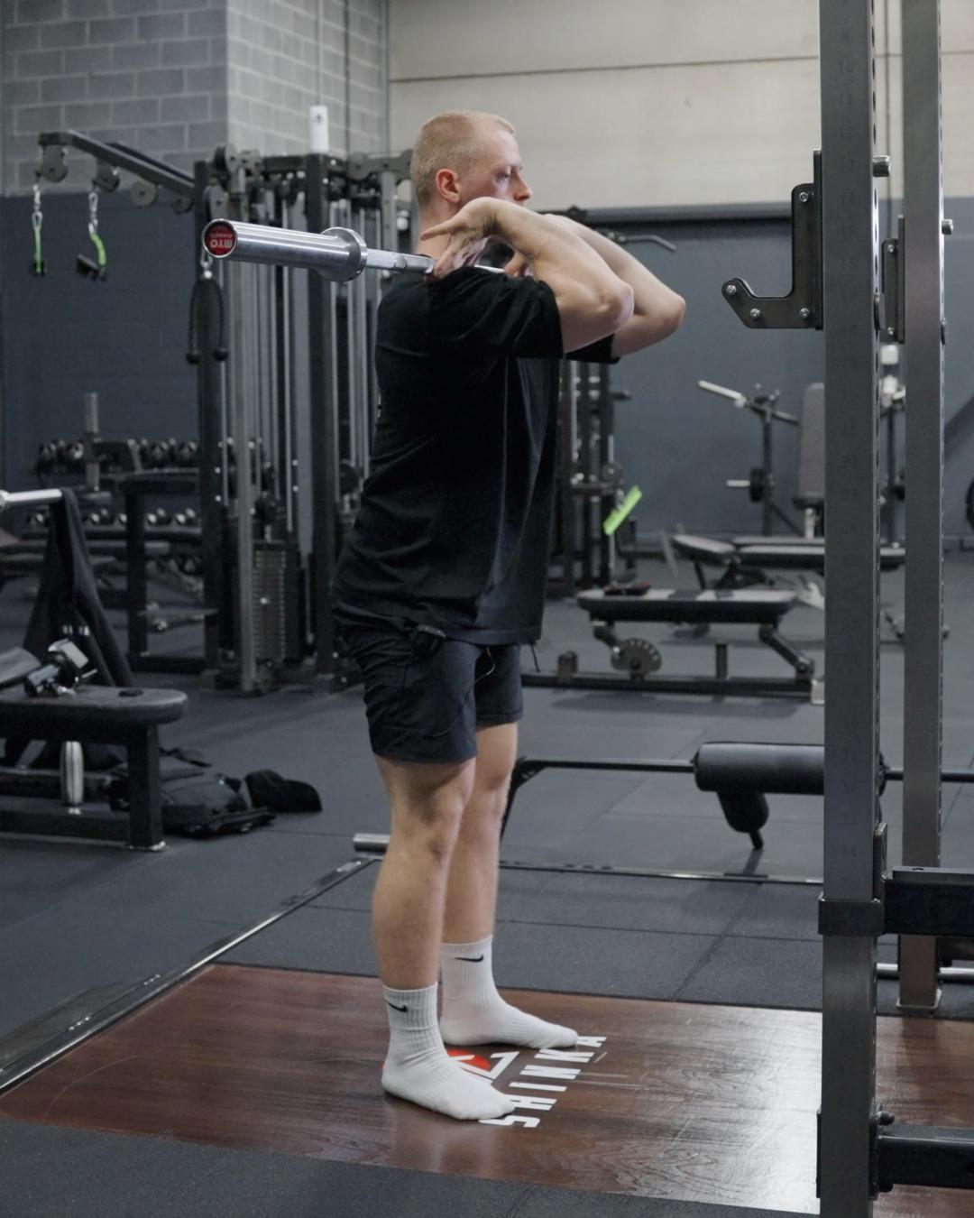 Bovendien helpt deze variant om het bovenlichaam te versterken — iets wat cruciaal is voor een goede back squat, want de belasting rust uiteindelijk op de trapezius en de bovenrug. Je bovenlichaam moet deze dus kunnen dragen.