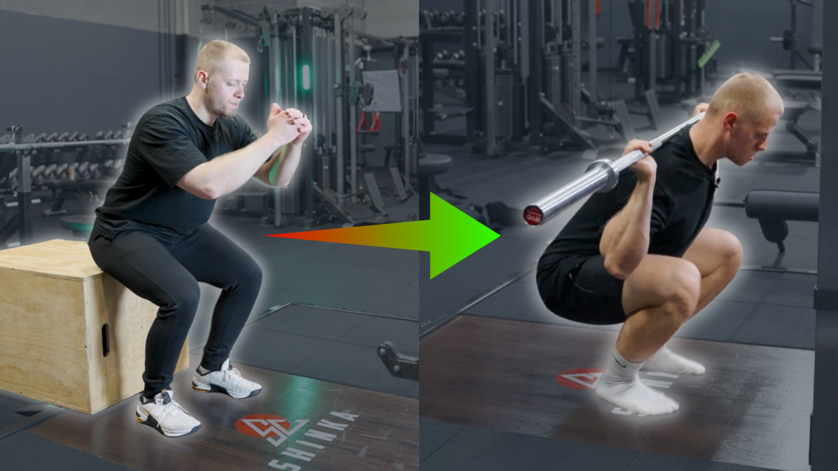 1. Box squat (lichaamsgewicht) – 2 tot 6 weken